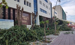 Τίποτα δεν άφησαν, πέρα από τον κεντρικό κορμό και τα κύρια παρακλάδια του, στις πανέμορφες κουτσουπιές των δικαστηρίων της Καλαμάτας, οι εργαζόμενοι που ανέλαβαν το “καθάρισμα” των δέντρων…