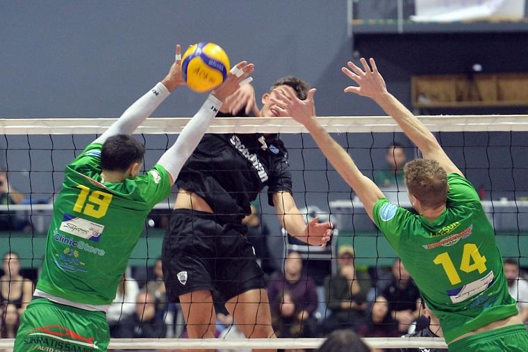Οι καλαματιανοί προηγήθηκαν 1-0 σετ παρότι βρέθηκαν να χάνουν με 10-15, έφεραν τα πάνω-κάτω με ένα συνολικό 6-0 με πόντους από Κρικ, Μάρκου και Χόρβαρθ, προσπέρασαν 16-15 και με νέο σερί 3-0 έκαναν το 20-17, για να κλείσει η περίοδος 25-22.