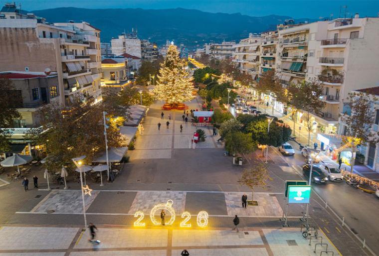 Στις 11.30 η Δημοτική Φιλαρμονική θα παιανίσει “2026 ευχές” και με την είσοδο του νέου χρόνου θα γίνει ρίψει των “αθόρυβων” πυροτεχνημάτων, ενώ θα προσφερθούν τα κεράσματα.