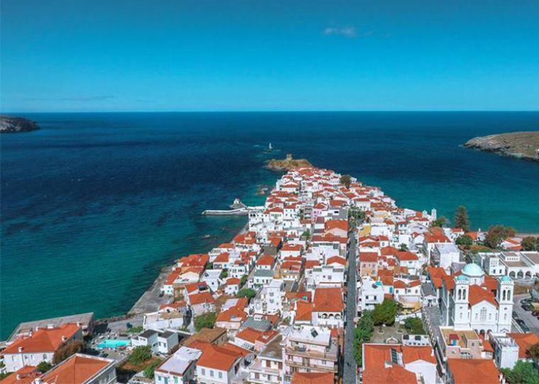 Ύστερα η συζήτηση περιστράφηκε στην παραμονή του στην Άνδρο, όπου είχε φιλοξενηθεί στην εντυπωσιακή Χώρα της στο Αρχοντικό που η οικογένεια Ανδρειώτη διατηρούσε στο νησί των γλυκών αντιθέσεων, όπως αποκαλούν την Άνδρο όσοι καλά τη γνωρίζουν.