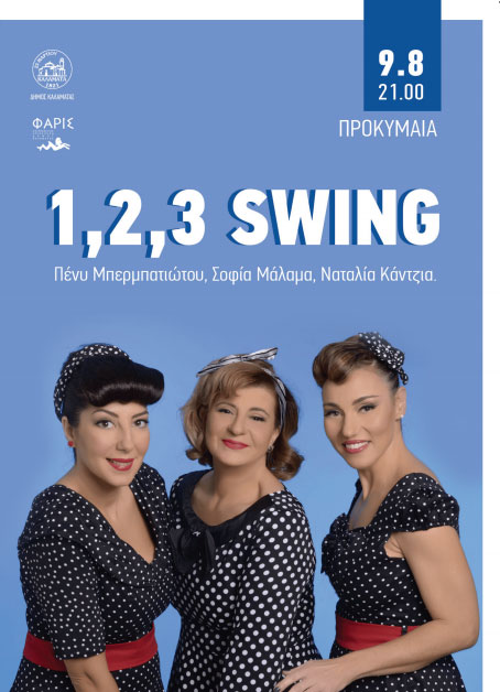 Info: Η συναυλία των “1,2,3 Swing” στην Προκυμαία της Καλαμάτας, στις 9 Αυγούστου, ξεκινάει στις 21:00, με ελεύθερη είσοδο για το κοινό, και διοργανώνεται από τον Δήμο και την ΦΑΡΙΣ, στο πλαίσιο του "Πολιτιστικού Καλοκαιριού 2019".