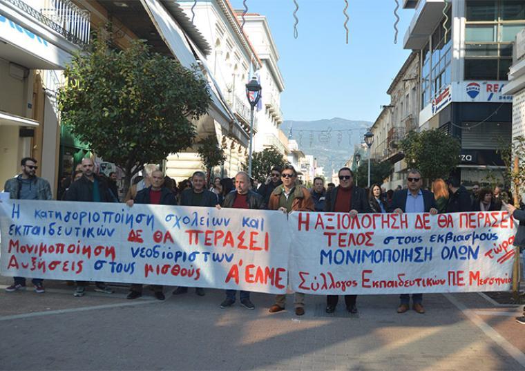 Ειδικότερα ο Σύλλογος Εκπαιδευτικών υπογραμμίζει: «Μετά τη Λακωνία και τις μαζικές κλήσεις στην Αν. Μακεδονία και Θράκη, το Υπουργείο Παιδείας με την κυβέρνηση της Ν.Δ. συνεχίζουν την επίθεση με τις πειθαρχικές διώξεις σε βάρος αγωνιζόμενων εκπαιδευτικών που υπερασπίζονται το συνταγματικά κατοχυρωμένο εργατικό δικαίωμα στην απεργία. Τρεις συναδέλφισσες-οι εκπαιδευτικοί Π.Ε., μέλη του Συλλόγου μας κλήθηκαν σε ακρόαση και απολογία ενώπιον του Α΄ Τμήματος του Πρωτοβάθμιου Πειθαρχικού Συμβουλίου της Π.Δ.Ε. Πελοποννήσου την Πέμπτη 30 Απριλίου 2026, για το υποτιθέμενο πειθαρχικό αδίκημα της μη συμμετοχής στην αξιολόγηση, τη στιγμή που οι εκπαιδευτικοί απεργούσαν υλοποιώντας αποφάσεις της ολομέλειας προέδρων της ΔΟΕ, της 93ης ΓΣ ΔΟΕ και της ΕΕ της ΑΔΕΔΥ και η απεργία ήταν απολύτως νόμιμη.