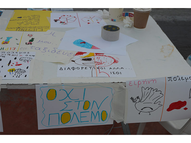 Εκπαιδευτικοί έπαιξαν με τα παιδιά μουσική, τραγούδησαν, χόρεψαν, ζωγράφισαν, έγραψαν φιλειρηνικά μηνύματα με συνθήματα αλληλεγγύης, σεβασμού και στήριξης της διαφορετικότητας, ισότητας κ.ά
