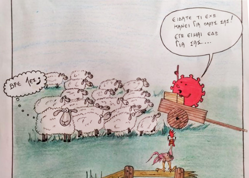 Δεν έχει περάσει και πολύς καιρός από την εισβολή του νέου κορονοϊού στη ζωή μας, κάνοντάς την άνω κάτω και φέρνοντας πολλές και σημαντικές στερήσεις, ακόμη και κοντινών μας ανθρώπων. Ο Νίκος Γιαννουλάτος, με τις “Ιογενείς ιστορίες”, του κάνει μια αναδρομή όσων ζήσαμε και σε έναν βαθμό συνεχίζουμε να ζούμε. Η περίοδος της πανδημίας ήταν και είναι πυκνή γεγονότων και ο σκιτσογράφος με την έξυπνη ματιά του και με προσεγμένο χιούμορ αναβιώνει την ιστορία της πανδημίας και μας παρουσιάζει τον χαρακτήρα του νέου κορονοϊού.