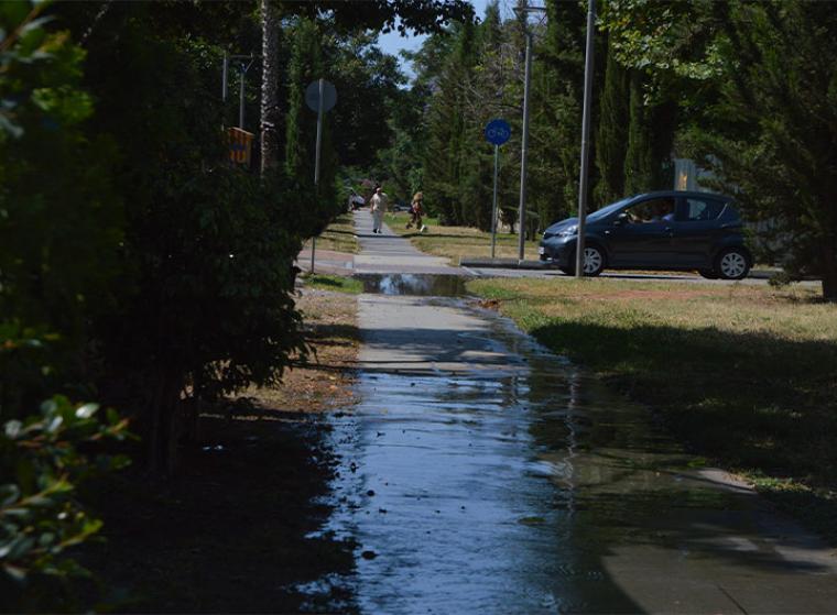 Επί δύο μέρες, σύμφωνα με τους περιοίκους, έχει σημειωθεί κάποια βλάβη στο αρδευτικό δίκτυο μπροστά από τα δικαστήρια της Καλαμάτας, στο χώρο πρασίνου με τον ποδηλατόδρομο, με αποτέλεσμα να τρέχουν τα νερά, να έχει λασπώσει ο τόπος, να μην μπορούν οι ποδηλάτες να χρησιμοποιήσουν το συγκεκριμένο τμήμα του ποδηλατόδρομου και να βγαίνουν στο δρόμο.