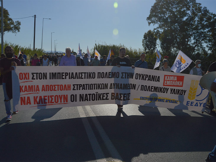 Στην ομιλία του ο Δημήτρης Οικονομάκος κάλεσε τον ελληνικό λαό να αντιταχθεί στον ιμπεριαλιστικό πόλεμο στην Ουκρανία, να αγωνιστεί για την απεμπλοκή της Ελλάδας από τους ιμπεριαλιστικούς σχεδιασμούς και πολέμους, να αποτρέψει οποιαδήποτε αποστολή στρατιωτικών δυνάμεων και πολεμικού υλικού έξω από τη χώρα, να διεκδικήσει το κλείσιμο των ξένων βάσεων στην Ελλάδα και την κατάργηση της νέας Συμφωνίας με τις ΗΠΑ για τις βάσεις, να απαιτήσει να μη χρησιμοποιηθεί το πολεμικό αεροδρόμιο.