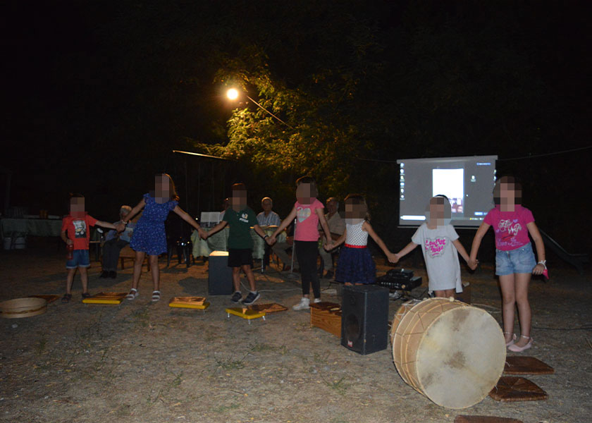 Η εκδήλωση περιελάμβανε επίσης προβολή βίντεο με τον μπάρμπα Γιάννη να τραγουδάει αυθεντικό παραδοσιακό τραγούδι της περιοχής και να χορεύει, ενώ ολοκληρώθηκε με το τραγούδι και τη μουσική των παιδιών του Θερινού Ορεινού Σχολείου Ταϋγέτου και με προσφορά κεράσματος από το Σύλλογο, όπως τσάι και μέντα Ταϋγέτου και κουλουράκια.