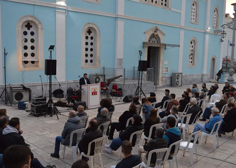 Η εκδήλωση περιελάμβανε ομιλία του μέλους της Κεντρικής Επιτροπής του ΚΚΕ, Νίκου Κουτουμάνου, που επικέντρωσε στον ιμπεριαλιστικό πόλεμο στην Ουκρανία και συγκινητική μουσικοαφηγηματική παράσταση, ενώ απέναντι, στον Πολυχώρο Δημιουργίας της ΚΝΕ “Μικρόβιο”-Γιώργος Βουβαλέας, λειτούργησε έκθεση για τον Νίκο Μπελογιάννη. Η ολοκλήρωση της εκδήλωσης έγινε με τον ύμνο της κομμουνιστικής διεθνούς με τον κόσμο να τραγουδά με υψωμένη την αριστερή γροθιά.