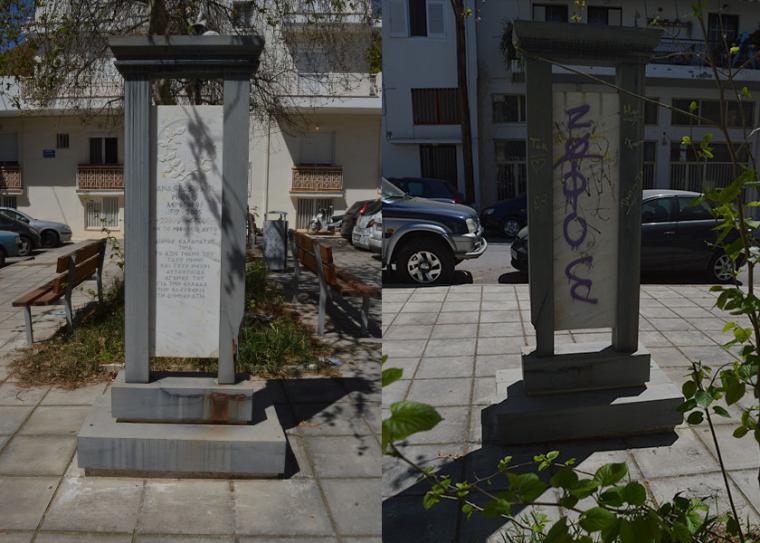 Η τιμητική στήλη έχει υποστεί φθορές από το πέρασμα του χρόνου, ενώ η μια της πλευρά είναι βανδαλισμένη-μουτζουρωμένη. Ο δε πολύ μικρός χώρος πρασίνου είναι αφρόντιστος και με χορτάρια, ενώ βανδαλισμένο είναι και το πίλαρ πίσω από το μνημείο.