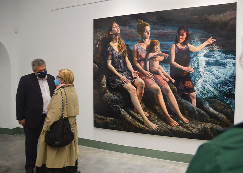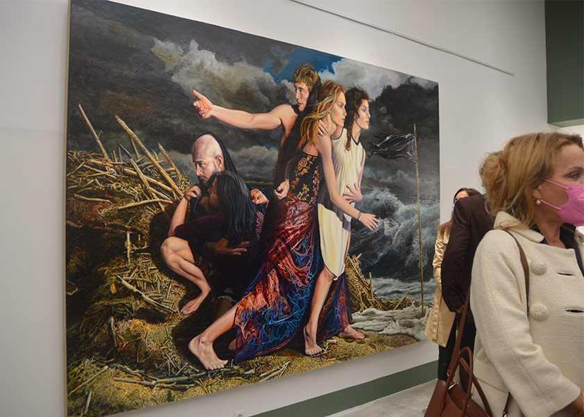 Τέλος ο Δημήτρης Τζαμουράνης αναφέρθηκε σε δύο από τα πιο ξεχωριστά έργα της έκθεσης, τα οποία εμπνεύστηκε από τον Αντουάν Βαττώ και τον πίνακά του “Επιβίβαση για τα Κύθηρα”, αν και οι πρωταγωνιστές δεν είναι μια χαρούμενη παρέα αλλά μετανάστες.