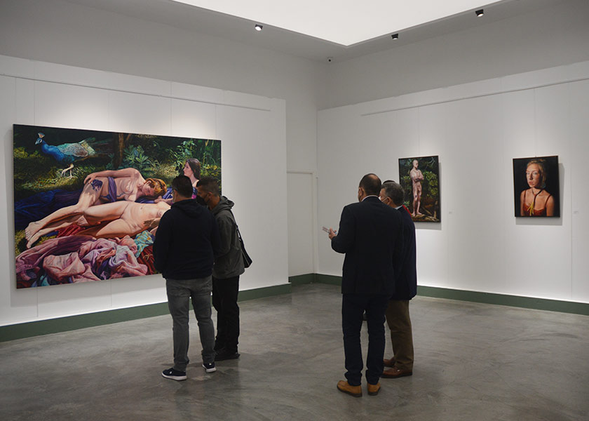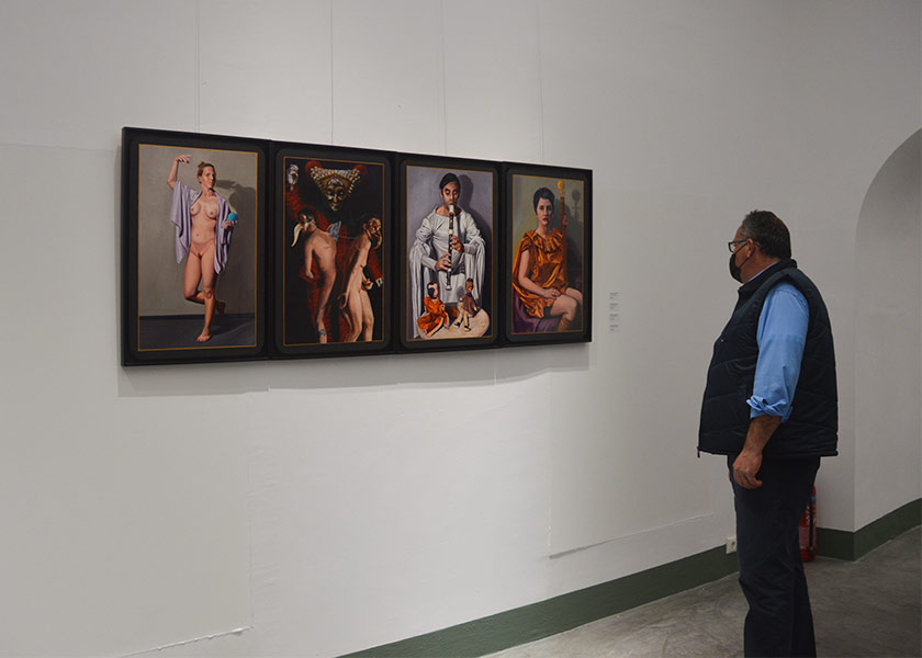 Ο Δημήτρης Τζαμουράνης μιλώντας στο κοινό εξήγησε ότι είναι ένας παραδοσιακός ζωγράφος. Για τα έργα του χρησιμοποιεί μοντέλα, πρόσωπα της οικογένειάς του και στενούς του φίλους. “Είναι σαν θεατρική παράσταση” είπε ο μεγάλος ζωγράφος και σημείωσε ότι με τα μοντέλα του κάνει ένα workshop, που διαρκεί εβδομάδες, από το οποίο προκύπτει η σύνθεση που δημιουργεί.