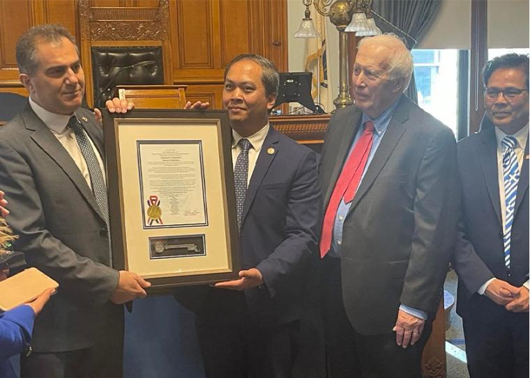 Σε ομιλία του, ο Δήμαρχος του Λόουελ, Sokhary Chau αναφέρθηκε στη σημασία αλλά και τον συμβολισμό της Αδελφοποίησης των δύο περιοχών. Εστίασε δε στη δραστήρια Ελληνική Ομογένεια του Λόουελ που επί σειρά ετών έχει επιτύχει σπουδαία πράγματα.