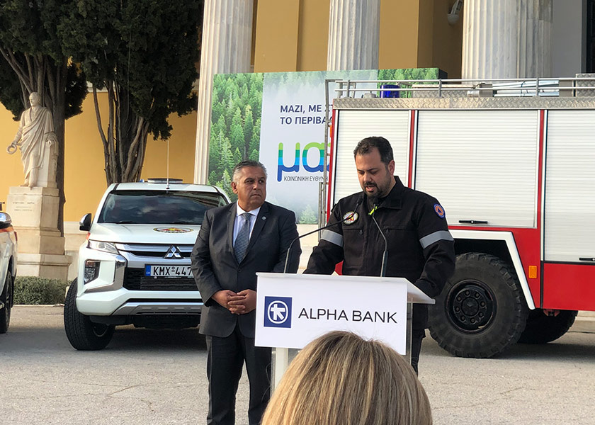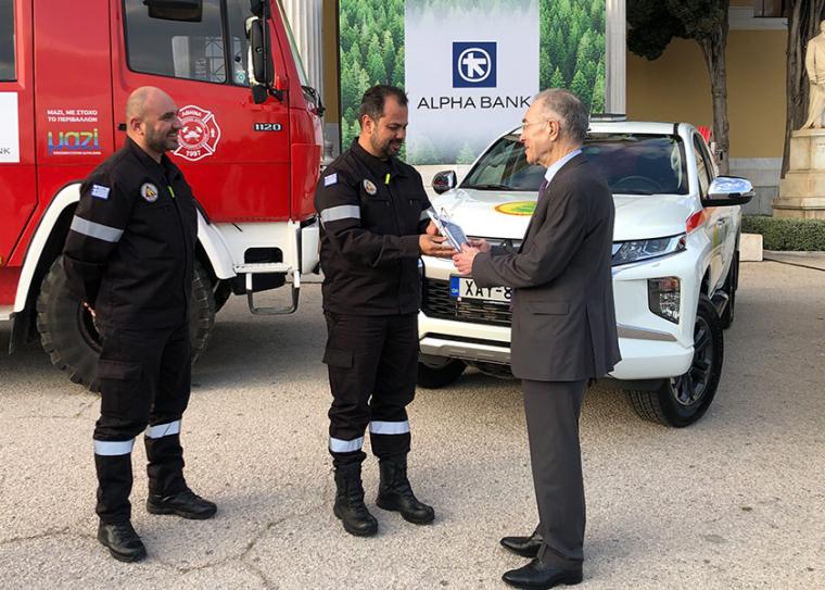 Στην τελετή που πραγματοποιήθηκε στις 4/5 στην Αθήνα, στο Ζάππειο Μέγαρο, η ALPHA BANK, παρουσία του Υπουργού Κλιματικής Κρίσης και Πολιτικής Προστασίας Ελλάδας κ. Χρήστου Στυλιανίδη, του προέδρου της τράπεζας κ. Βασίλη Ράπανου, του Υποστράτηγου του Πυροσβεστικού Σώματος κ. Ιωάννη Σταμούλη και άλλων επισήμων, παρέδωσε τα οχήματα στις εθελοντικές ομάδες που επελέγησαν. Όπως ειπώθηκε, η ενίσχυση των συγκεκριμένων εθελοντικών ομάδων αποτελεί ενέργεια αναγνώρισης του σπουδαίου έργου και της σημαντικής προσφοράς τους στον τομέα της δασοπυρόσβεσης και συμβολίζει την αναγνώριση στο «πρόσωπό» τους, της προσφοράς γενικότερα του κινήματος του εθελοντισμού.