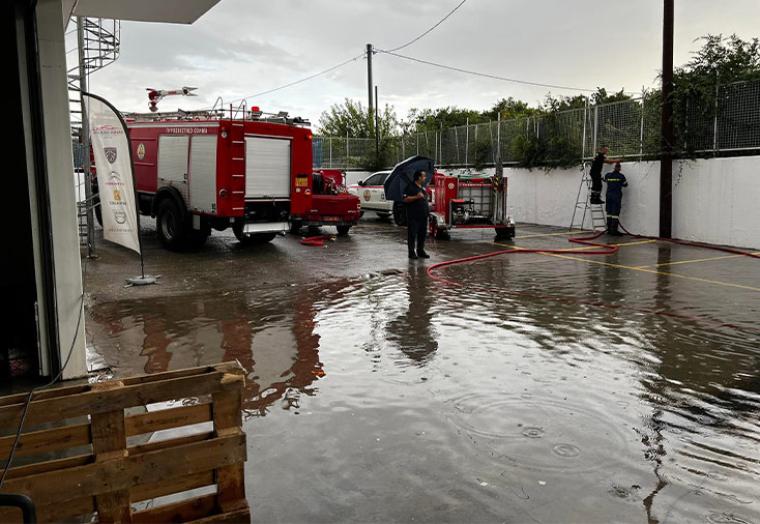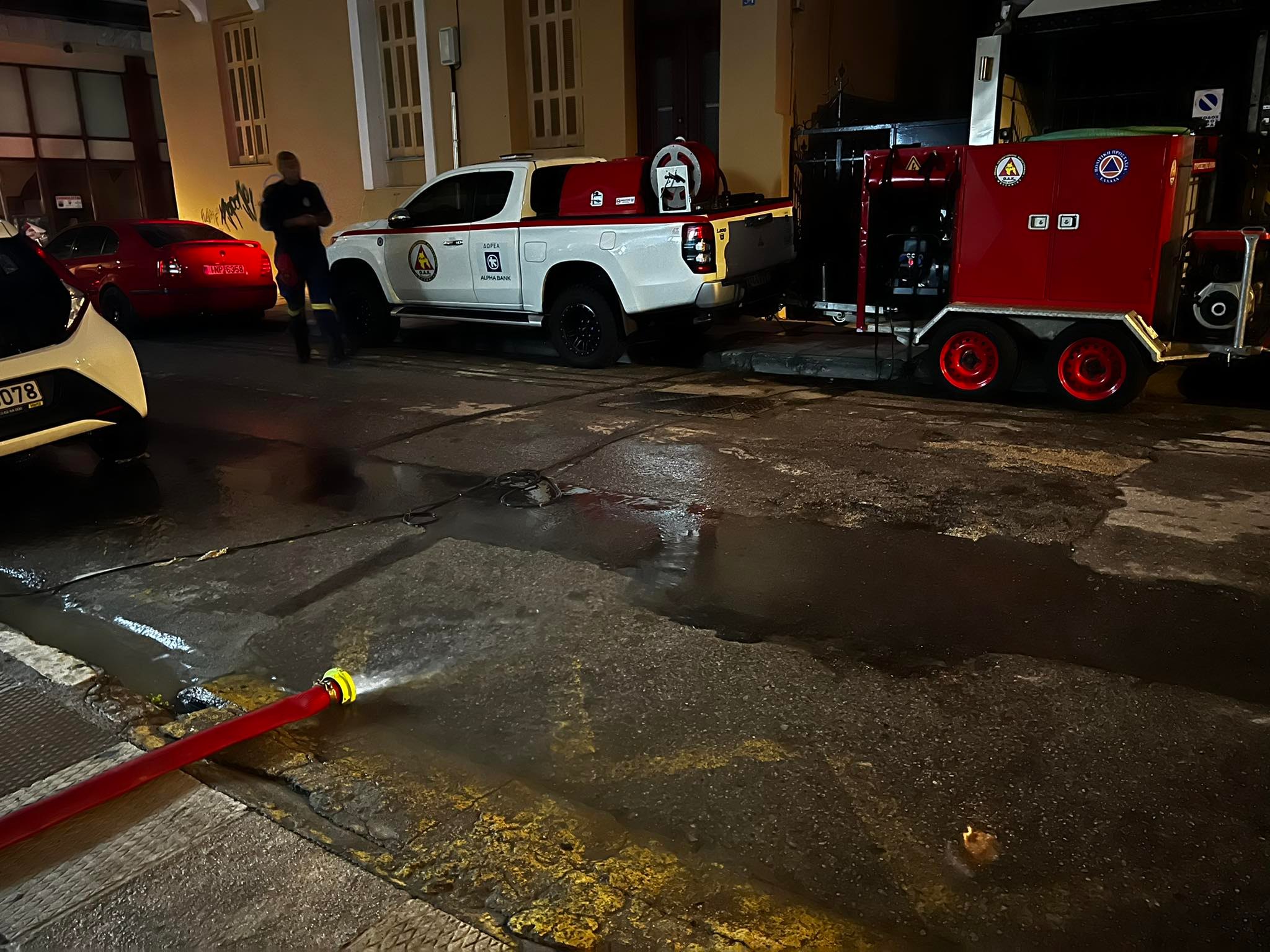 Με δικά της μέσα η Ομάδα Αντιμετώπισης Καταστροφών άντλησε νερά από επιχείρηση στη Νέα Είσοδο, καθώς και από πλημμυρισμένο υπόγειο πολυκατοικίας Αριστοδήμου.