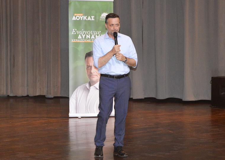 Η ομιλία του υποψήφιου προέδρου του ΠΑΣΟΚ-ΚΙΝΑΛ και δημάρχου Αθηναίων Χάρη Δούκα έγινε στο σχεδόν γεμάτο αμφιθέατρο του Πνευματικού Κέντρου και ξεκίνησε με έντονη κριτική απέναντι στην κυβέρνηση, υπογραμμίζοντας όμως ότι είναι ανάγκη το ΠΑΣΟΚ-ΚΙΝΑΛ να μιλήσει καθαρά για τις τομές και ανατροπές που τόνισε ότι πρέπει να γίνουν και οι οποίες πρωτίστως πρέπει να αφορούν την υγεία, την εκπαίδευση, τον πρωτογενή τομέα.