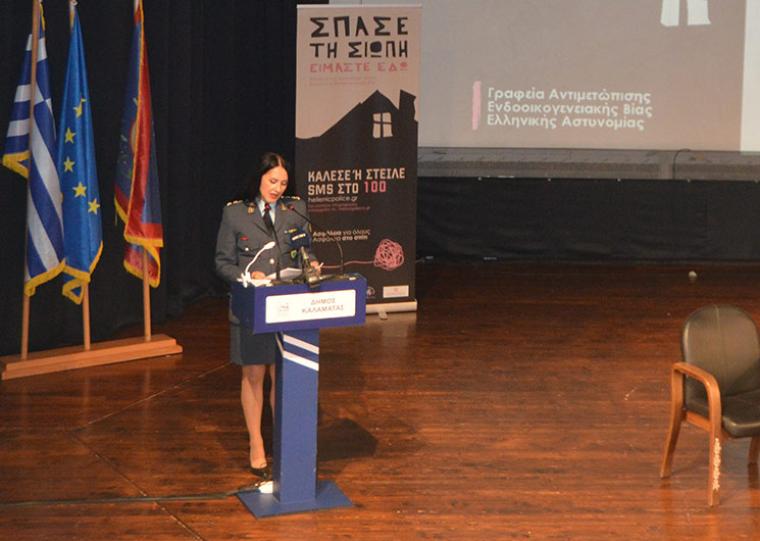 Παρουσίασε επίσης διάφορα στοιχεία σχετικά με τη στελέχωση του Γραφείου Αντιμετώπισης Ενδοοικογενειακής Βίας του Αστυνομικού Τμήματος Καλαμάτας.