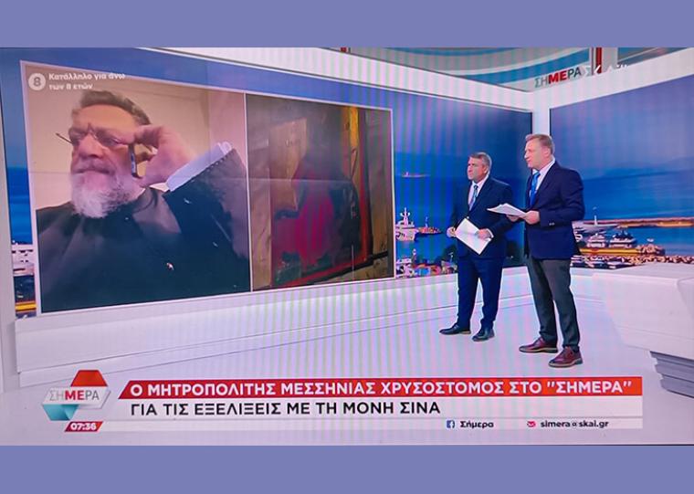 Σε δελτίο Τύπου της Μητρόπολης Μεσσηνίας για τις δηλώσεις του Μητροπολίτη στον ΣΚΑΪ σχετικά με τη Μονή Σινά επισημαίνονται τα εξής: «Αναφορικά με τις εξελίξεις γύρω από τη Ιερά Μονή Σινά, μετά και τις διαβεβαιώσεις του εκπροσώπου του υπουργείου Εξωτερικών της Αιγύπτου για διατήρηση της ιερότητας του χώρου, μίλησε το πρωί της 30/05/2025 στην τηλεόραση του ΣΚΑΪ και στην εκπομπή «ΣΗΜΕΡΑ», ο Σεβασμιώτατος Μητροπολίτης Μεσσηνίας κ. Χρυσόστομος.