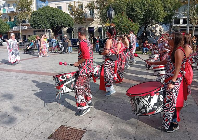 Τυμπανιστές, ντυμένοι με στολές με διάφορα γεωμετρικά σχήματα σε κόκκινο, μαύρο και άσπρο χρώμα, με έντονο ρυθμό, με χορευτικές κινήσεις σάμπα και ρέγκε, ανέβασαν το μεσημέρι τα ντεσιμπέλ στην κεντρική πλατεία της Καλαμάτας και τράβηξαν το ενδιαφέρον του κόσμου. Ήταν μέλη ομάδων Batalá από διάφορες περιοχές της χώρας, που αύριο, Κυριακή, θα βρίσκονται στον ποταμό Άρι, στην περιοχή των Ακοβιτίκων, όπου θα πραγματοποιηθεί η καθιερωμένη ετήσια περιβαλλοντική, αθλητική και πολιτιστική γιορτή. Ομάδα Batalá δημιουργείται και στην Καλαμάτα και μάλιστα θα πραγματοποιηθεί συνάντηση όσων θέλουν να λάβουν μέρος σε αυτό το αναζωογονητικό project το επόμενο Σάββατο, 8 Νοεμβρίου, στο 2ο Γενικό Λύκειο Καλαμάτας…