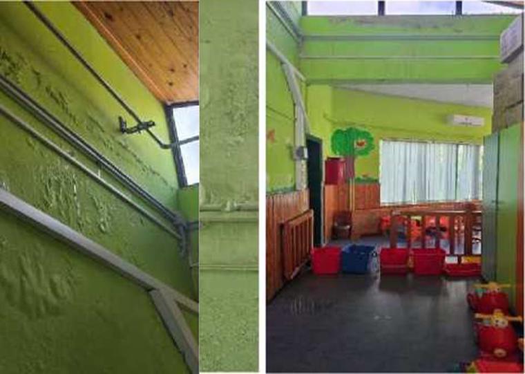 Η υγρασία έχει φουσκώσει τοίχους και σοβάδες. Κομμάτια αποκολλώνται. Ο κίνδυνος να πέσουν υλικά στα κεφάλια παιδιών και εργαζομένων είναι απολύτως υπαρκτός. Και όμως, παρά τις συνεχείς επισημάνσεις, καμία παρέμβαση δεν έχει γίνει.