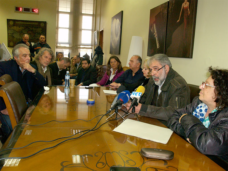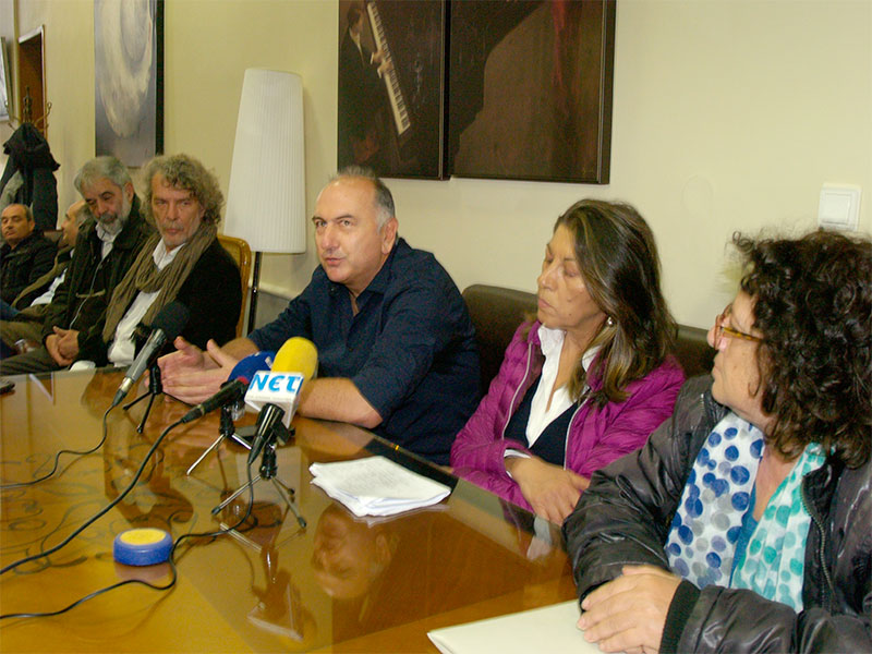 Ο εκπρόσωπος του Συλλόγου Φαρμακοποιών, Σωτήρης Αργυρόπουλος, ανάμεσα στην πρόεδρο του Εμπορικού Συλλόγου, Λίλιαν Ψηλάκη και την πρόεδρο του Συλλόγου Αρχιτεκτόνων, Παναγιώτα Μπαξιβανάκη