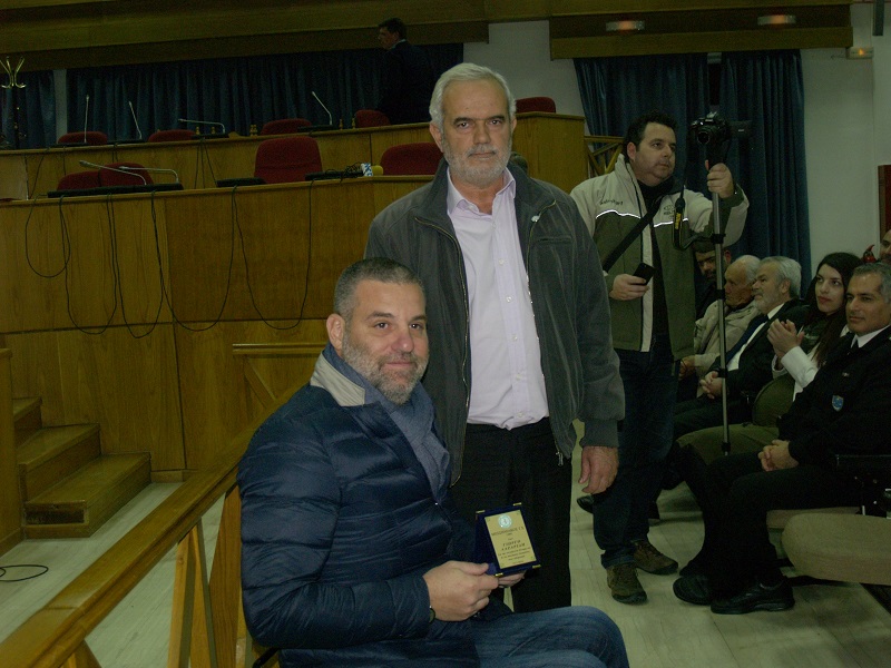 Ο πρωταθλητής Γιώργος Λαζαρίδης που βραβεύτηκε από τον πρόεδρο του Μεσσηνιακού Τάκη Στασινόπουλο