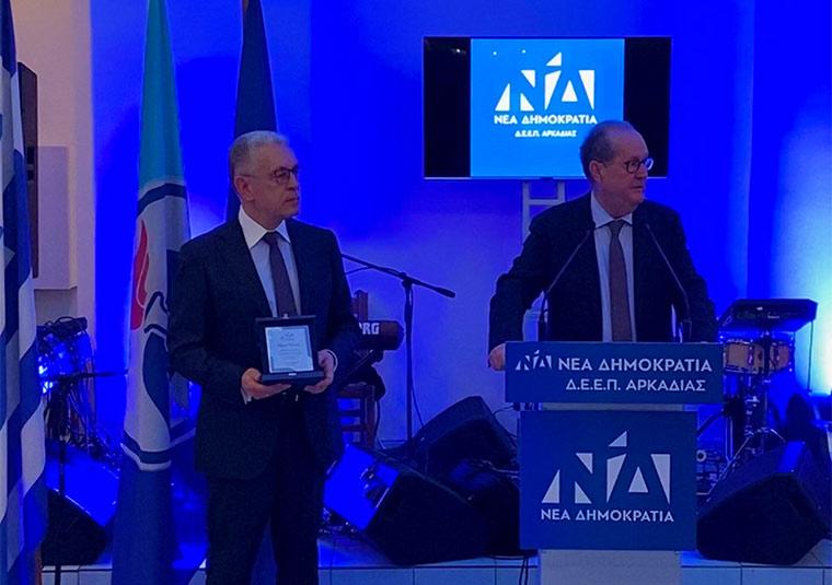 Στο πλαίσιο της ίδιας εκδήλωσης, εξ άλλου, ο Π. Νίκας επέδωσε στον αντιπεριφερειάρχη Διοίκησης, Οικονομίας, Παιδείας, Οργάνωσης, Δίκαιης Μετάβασης (Μεγαλόπολη) και ΣΔΙΤ απορριμμάτων Χρήστο Λαμπρόπουλο τιμητική πλακέτα για την προσφορά του αείμνηστου πατέρα του δεύτερου ως πρόεδρος της ΔΕΕΠ και στέλεχος του κόμματος.