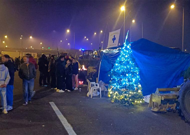 Και αυτή τη νύχτα η συμμετοχή στο μπλόκο είναι μεγάλη και μάλιστα παραβρίσκονται πολλοί νέοι.
